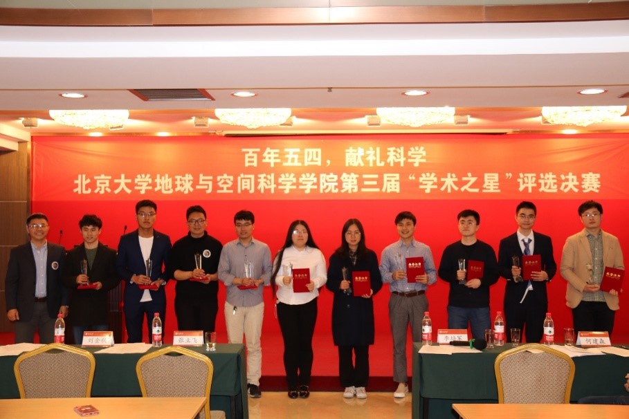 颁奖仪式后,何建森老师和张波老师对本次活动做了总结。何建森老师首先感谢了学院老师、参赛选手、地空研会等对本次学术之星活动的辛勤付出,赞扬了选手们在活动过程中体现出的学术素养,同时鼓励大家要有“山高人为峰”的进取精神,希望大家勇攀科研高峰,为真理而奋斗。张波老师则结合自己15年前参加北大“挑战杯”的经历,以及15年后以评委身份参加学院唯一以学生为主体的学术活动的经历,对同学们进行鼓励。张波老师感慨到,跟大家一起讨论科学问题不禁使自己又找到了学生时代的感觉,希望大家以科研为支撑,每年都能相聚于此交流成果、分享经验,并祝愿大家能真正静下心来,回归到科研本身,脚踏实地,奋斗青春。